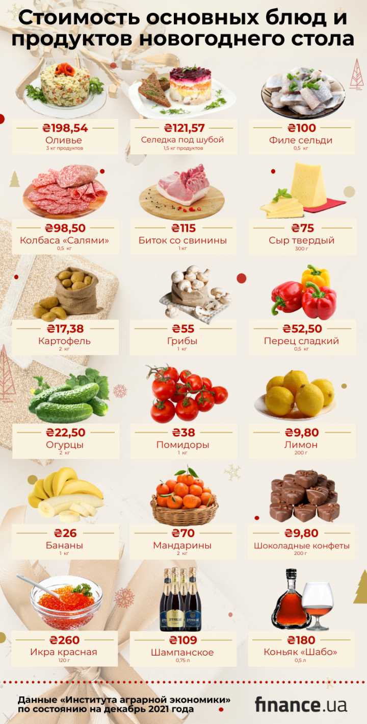 Оливье и селедка под шубой: во сколько обойдется новогодний стол-2022 (инфографика) / Новости / Finance.ua