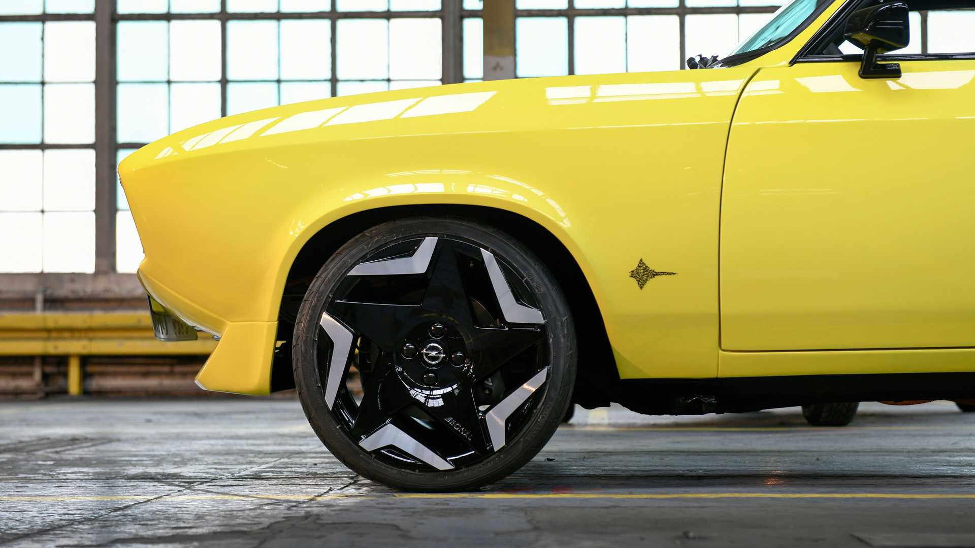 Купе сохранило дизайн исторической модели и, вместе с тем, примерило на себя актуальный фирменный стиль марки. Машину оснастили передней панелью Pixel-Vizor, на которой могут отображаться короткие графические сообщения, оригинальными задними фонарями в ретро-стиле и 17-дюймовыми колесными дисками Ronal. Кузов Opel Manta GSe окрасили в яркий желтый цвет, а капот – в черный.