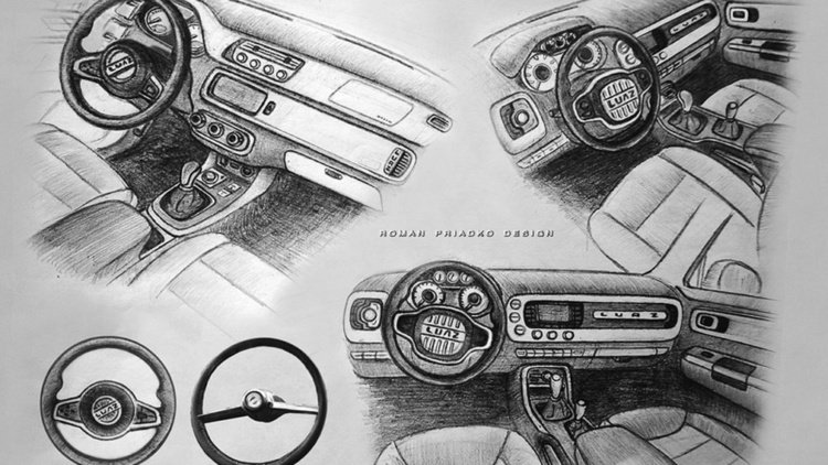 Кроме экстерьера дизайнер также представил интерьер Волыни. Как задумывал автор, внутри автомобиля должно быть двухспицевое ​​рулевое колесо. Общий стиль консоли сильно схож с оригинальной. Кроме этого все элементы интерьера созданы с нуля, так как салоны ЛуАЗов были утилитарными.