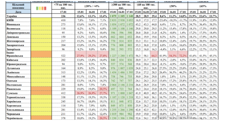 Ивано-Франковска — три критических показателя (новых случаев, уровня и динамики госпитализаций);