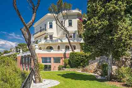 Шестиэтажная вилла площадью тысячу квадратных метров расположена на возвышенности с видом на Средиземное море. Просторный участок, на котором находится пейзажный бассейн, занимает пять тысяч квадратных метров.