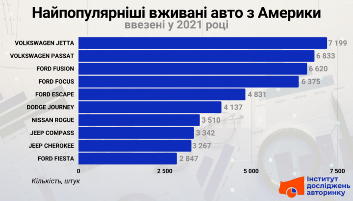 Бестселлером 2021 года среди бывших в употреблении «американцев» оказалась Volkswagen Jetta (7,2 тыс.). Второе место занял Volkswagen Passat (6,8 тыс.), а третье — Ford Fusion (6,6 тыс.).
