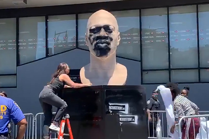 О том, что Флойду, признанному жертвой полицейского произвола, поставили памятник в Нью-Йорке, стало известно 19 июня. Статую, сделанную из толстых листов светлой фанеры, открывали с участием членов семьи Флойда.