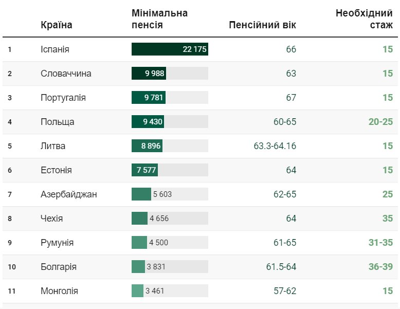 Размер пенсии. Интересно, что в большинстве стран, с которыми Украина имеет договор о зачислении стажа, пенсии выше. Напомним, что с 1 декабря минимальная пенсия по возрасту в Украине возросла до 1 769 гривен, что было предусмотрено бюджетом-2021. С пенсиями у других странах можно ознакомиться на инфографике.