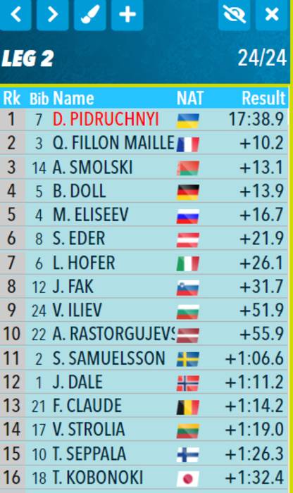 Капитан сборной Украины Дмитрий Пидручный показал лучшее время прохождения своего этапа в эстафете в Нове Место.