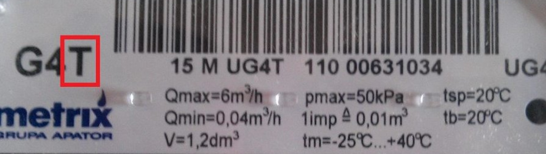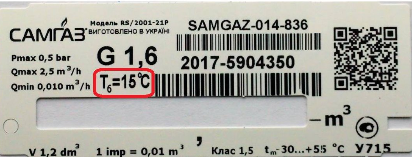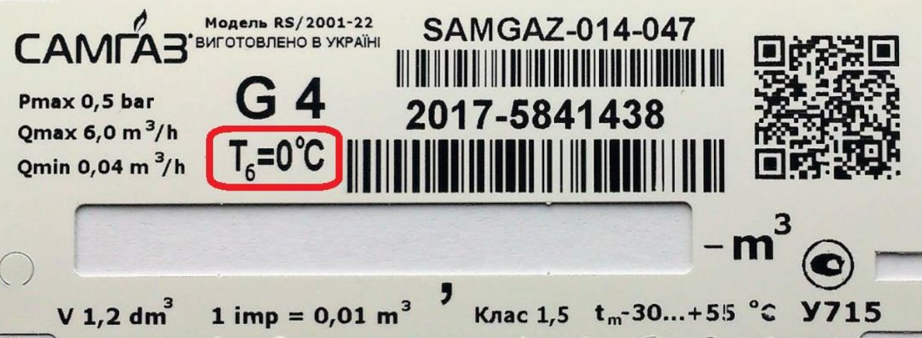 Посмотрите на фото. Если на счетчике есть вот такие отметки, выделенные красным — «Тб = 0 °С» или «Тб = 15 °С», или возле типоразмера есть буква «Т», то вы владелец такого счетчика.