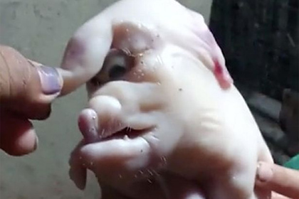 В одной из филиппинских деревень фермер обнаружил необычного поросенка среди новорожденных животных. Существо родилось с длинным и острым рылом. У него было два глаза, но всего одна глазница, над которой нависало подобие хобота.
