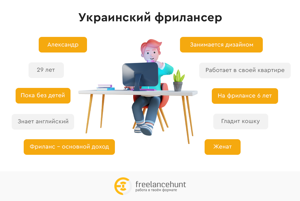 Средний портрет фрилансера – 29-летний парень, который уже 6 лет занимается дизайном. Он проживает в собственной квартире города-миллионника. Женат, но пока только планирует стать отцом.