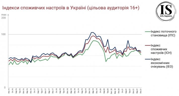 Такие данные получены в результате регулярного исследования, которое проводит компания Info Sapiens. Настроения потребителей отражают изменения в экономике Украины и материальном положении населения.