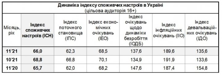 В ноябре индекс потребительских настроений (ИСН) составил 66, что на 2,8 пункта ниже показателя октября.