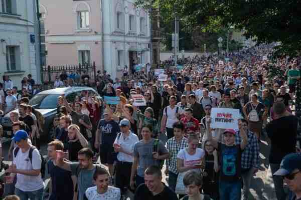 Несогласованное шествие в поддержку независимых кандидатов в депутаты Мосгордумы. Москва, 27 июля 2019 года.