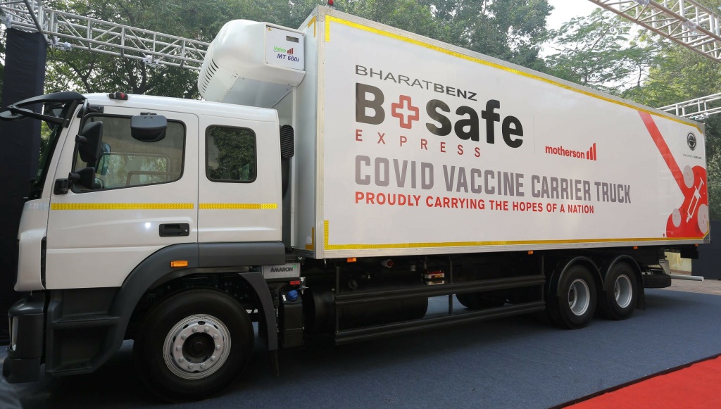 Предприятие Daimler India Commercial Vehicles (DICV) показало специализированный рефрижераторный грузов BharatBenz «BSafe Express», предназначенный для безопасной транспортировки вакцин от COVID-19