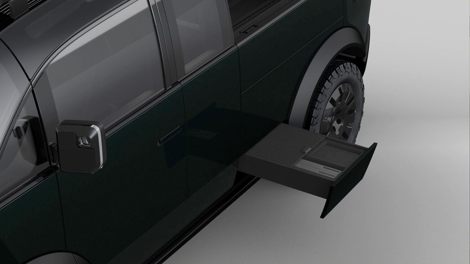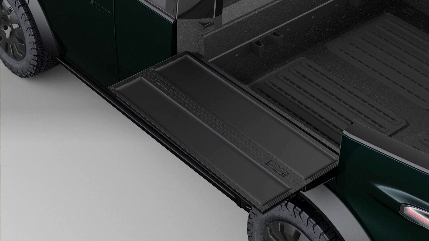 Более того, ниже грузовой платформы, по бортам предусмотрены выдвижные вещевые секции с наружным доступом – сюда можно положить все что угодно, от холодильной камеры до ноутбука.