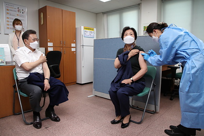 Президент Южной Кореи Мун Чжэ Ин вместе с супругой Ким Чжон Сук привились вакциной против коронавируса британско-шведской компании AstraZeneca. Об этом сообщает ТАСС со ссылкой на администрацию главы государства.