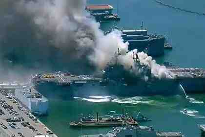 По данным спасательных служб, сразу после возгорания на корабле Bonhomme Richard произошел сильный взрыв. На месте происшествия работают пожарные бригады и спасатели.