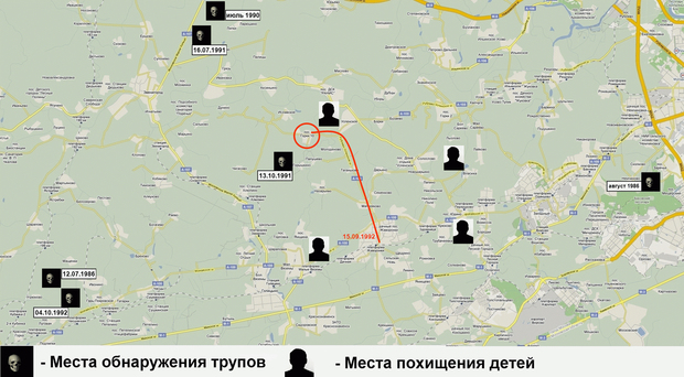 Тем временем в Одинцовском районе продолжали находить изуродованные детские тела. Фрагменты расчлененных тел порой выкапывали животные и растаскивали их по окрестностям, поэтому на поиски всех останков у следствия уходило много времени. Особенно поразило оперативников то, что волосы на головах некоторых жертв были абсолютно седыми — отражение того ада, в котором школьники побывали в свои последние часы жизни.