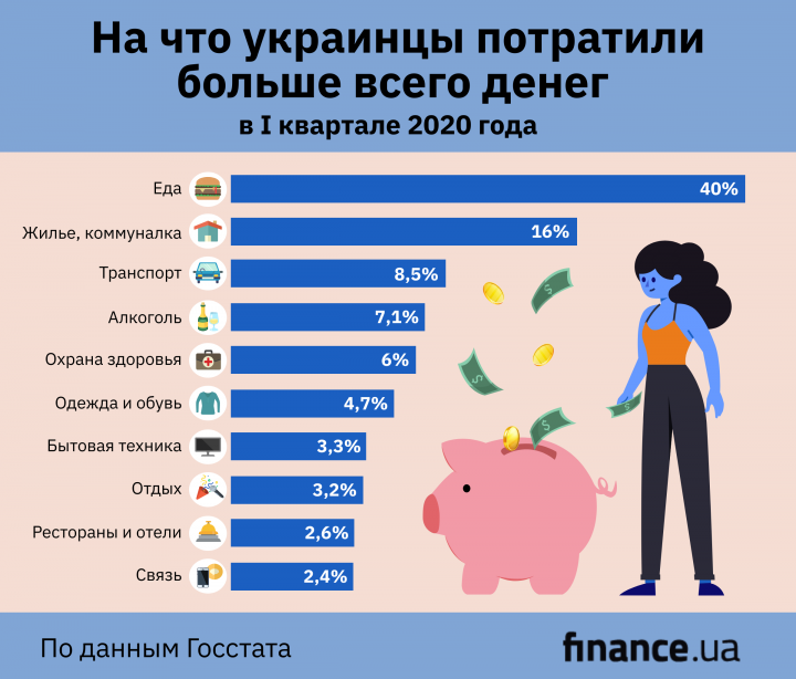 Продукты питания и коммуналка: Госстат показал структуру расходов населения / Новости / Finance.ua