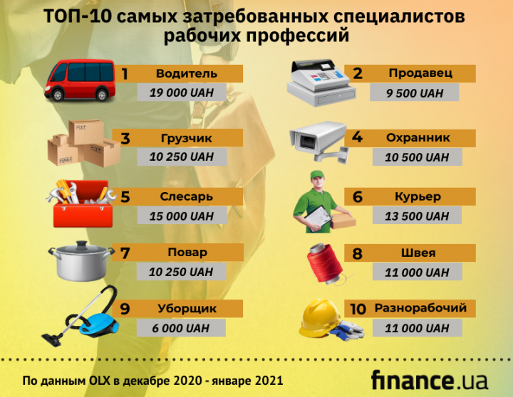 Накануне январского локдауна наиболее популярными среди рабочих профессий оказались водители, продавцы и грузчики. При этом первых не только чаще ищут, но и готовы платить выше, чем другим, — в среднем 19 000 грн.