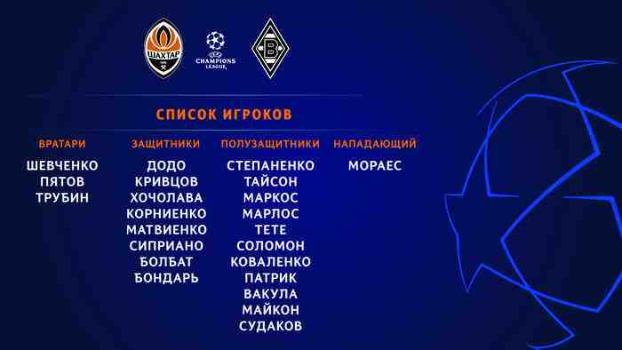 Заявка Шахтера на матч против Боруссии М: