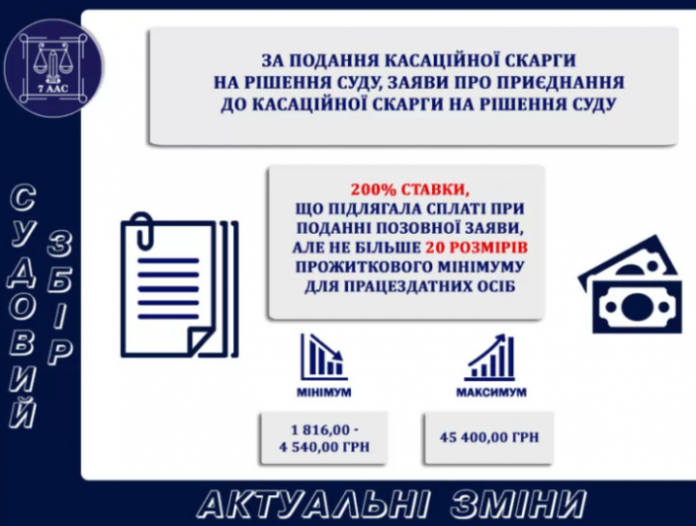 Отмечается, что судебный сбор взимается в соответствующем размере от прожиточного минимума (ПМ) для трудоспособных лиц, установленного законом на 1 января календарного года, в котором соответствующее заявление или жалоба подается в суд, – в процентном соотношении к цене иска и в фиксированном размере (статья 4 Закона Украины «О судебном сборе»).