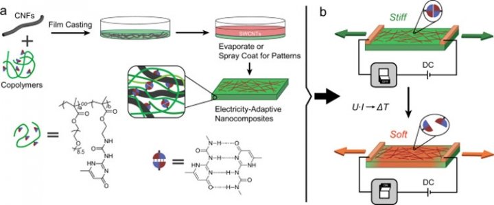 В ходе экспериментов выяснилось, что при подаче на такую «нанобумагу» электрического тока она нагревается и происходит разрушение связей волокон нанофибрилл целлюлозы друг с другом. Это ведёт к тому, что материал полностью или частично теряет жёсткость — обмякает. Снятие напряжения восстанавливает связи в местах пересечения нановолокон и возвращает материалу первоначальную жёсткость.