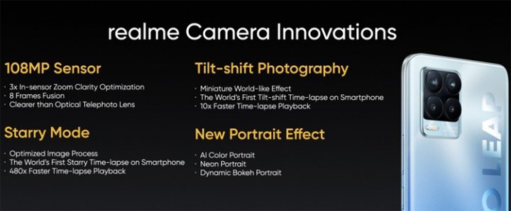 В дополнение к этим возможностям Realme реализовала ряд собственных инструментов. Это, в частности, режим Starry Mode для астрофотографии, несколько режимов для съёмки портретов (Neon Portrait, Dynamic Bokeh Portrait, AI Color Portrait) и пр.