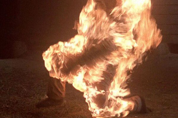 В следующую минуту все окрестности огласились дикими криками Алишера, который горел заживо. Тогда милиционеры принесли молоток, и один из них несколькими ударами по голове добил жертву, которая продолжала гореть. После этого тело Махмутова завалили автомобильными шинами и деревянными досками, а потом подожгли снова.