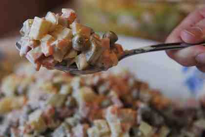 Почти половина россиян (49 процентов опрошенных) назвали салат «Оливье» главным блюдом праздничного стола. Об этом говорится в исследовании Всероссийского центра изучения общественного мнения (ВЦИОМ), пишет РИА Новости.
