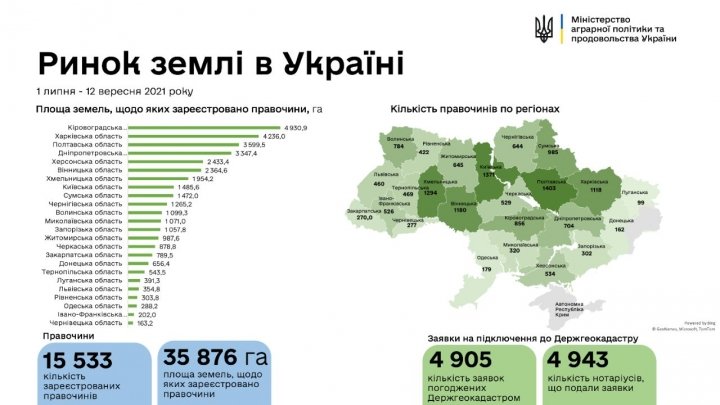 «Министерство аграрной политики и продовольствия Украины сообщает, что по состоянию на 13 сентября 2021 года заключено 15 533 сделки в рамках рынка земли», – говорится в сообщении Минагрополитики.