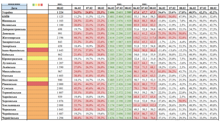 С 11 февраля «красная» зона в Украине расширилась (таблица)
