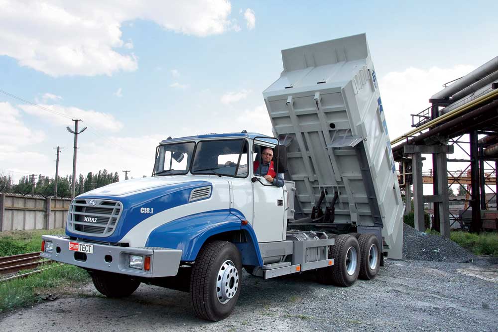Совершенно новый, современный новый по дизайну облик получил самосвал КрАЗ С18.1 с интегральным капотом (2011 г.). Грузоподъемность его была такая же, как и у предшественника – 18 т. А вот объем платформы был побольше – 16 м куб. Да и двигатель был другой – дизель ЯМЗ-6511 мощностью 362 л. с.
