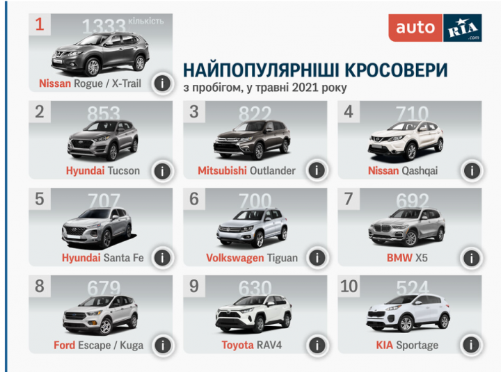 Самые популярные подержанные кроссоверы в Украине (инфографика)