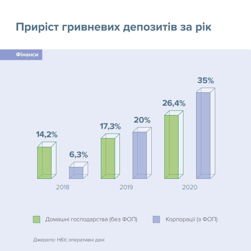 Самый высокий рост с 2010 г: гривневые вклады в 2020 выросли на 26,4% (инфографика) / Новости / Finance.ua