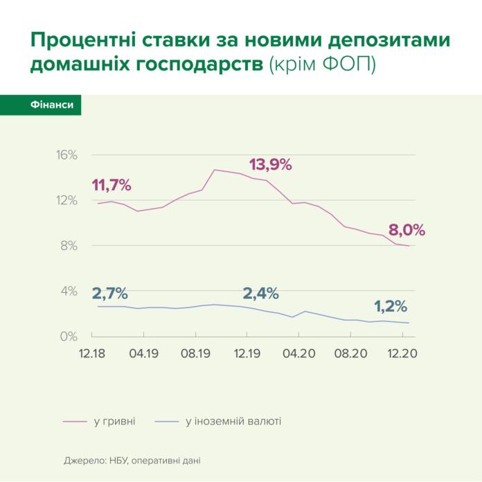 Объем депозитного портфеля банков в национальной валюте в 2020 году возрос на 30,7%, в том числе объем гривневых средств бизнеса увеличился на 35% (оперативные данные).