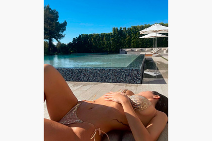 На размещенном в сети снимке 41-летняя модель позирует лежа около бассейна в раздельном бикини золотистого цвета бренда Oseree стоимостью 170 фунтов стерлингов (18 тысяч рублей). Публикация набрала почти 19 тысяч лайков.