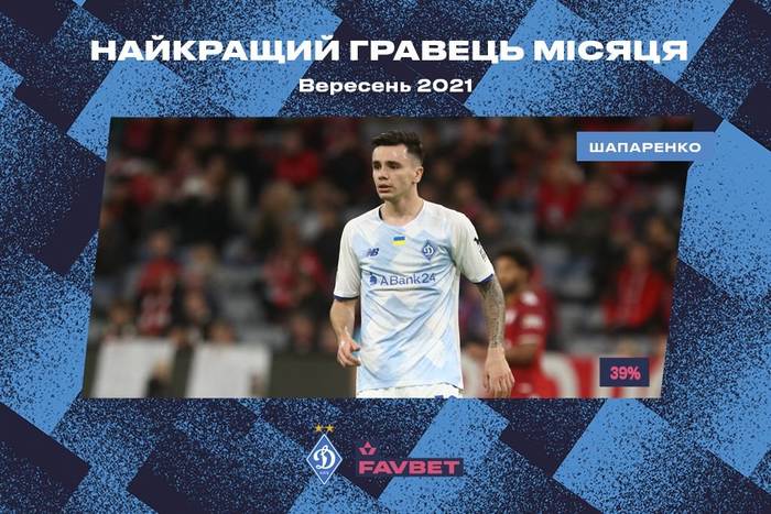 Награда досталась полузащитнику Николаю Шапаренко, за которого проголосовало 39% болельщиков столичной команды.