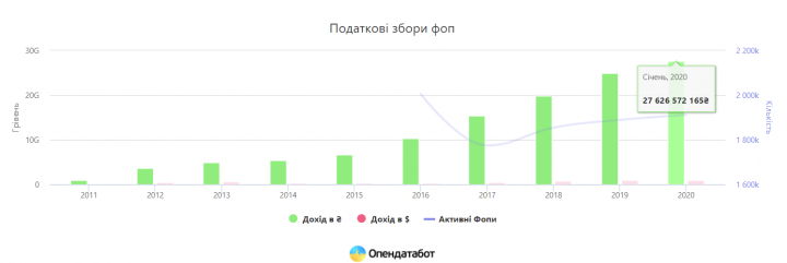 За последние годы поступления от предпринимателей выросли в пять раз — в 2019 году «фопономика» принесла Украине 1 млрд долларов.