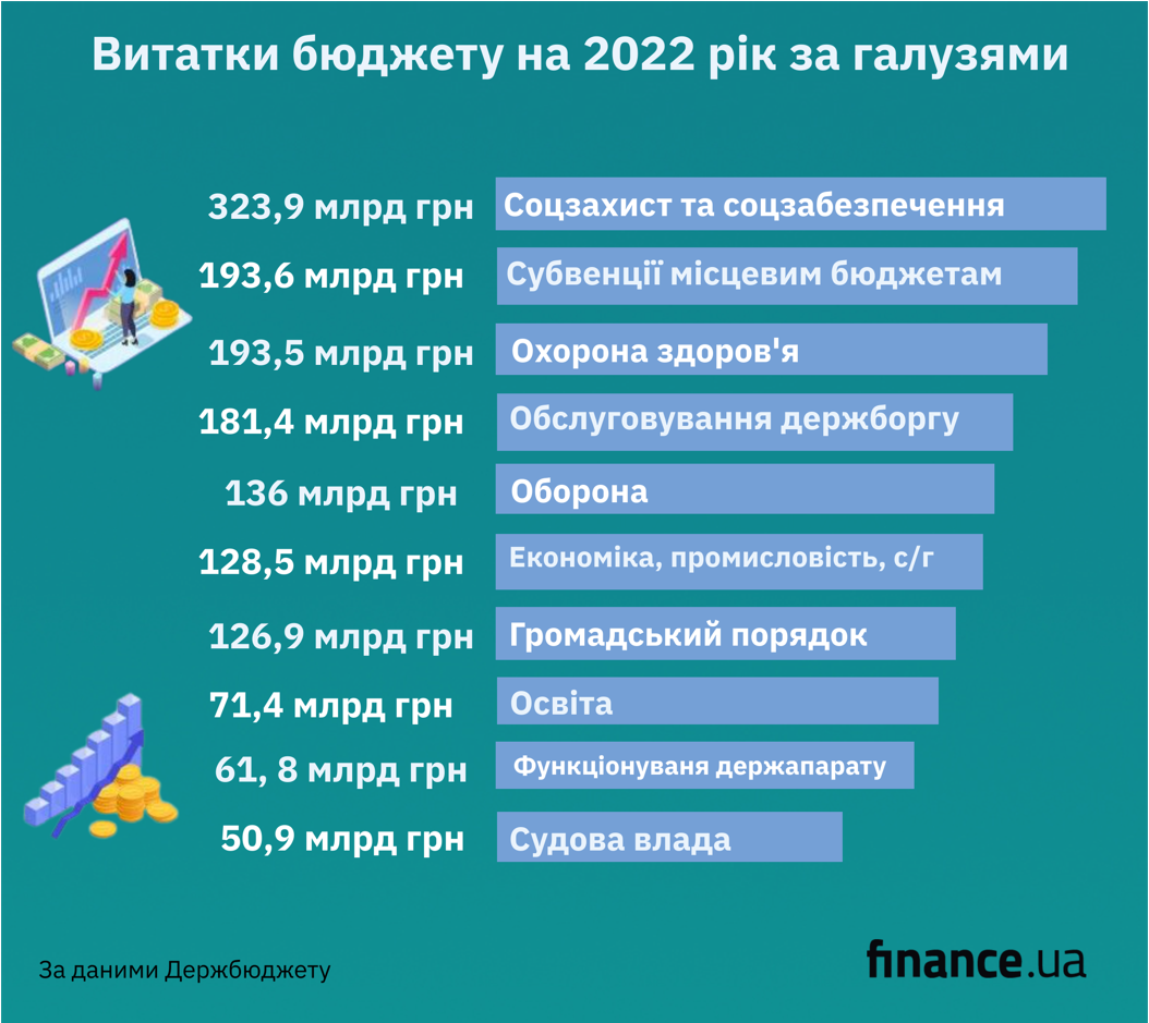 Сколько потратят средств на медицину, оборону и другие ключевые отрасли в 2022 году (инфографика)