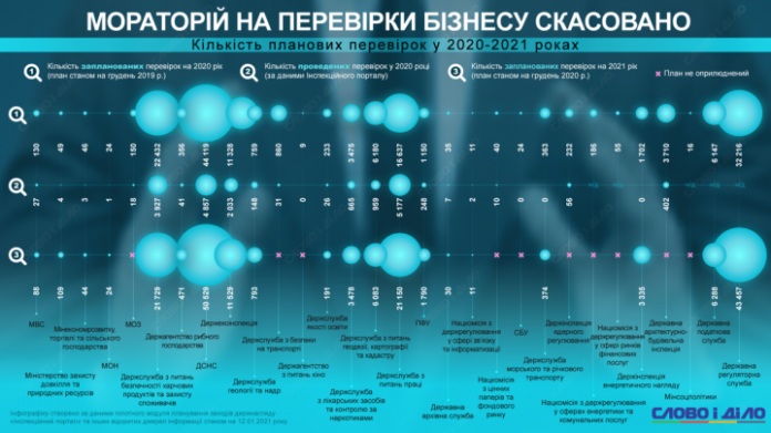 Когда в марте прошлого года в Украине ввели карантин из-за COVID-19, тогда же был установлен мораторий на плановые проверки органами госнадзора и контроля. 10 декабря его отменили и составили новый план проверок на 2021-й.