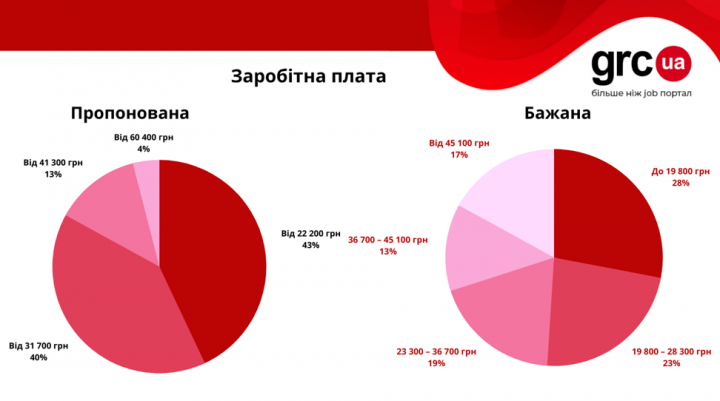 начинающие специалисты (интерны, стажеры и студенты без опыта работы) могут претендовать на компенсацию от 22.2 тыс. грн (таких вакансий большинство – 43%);