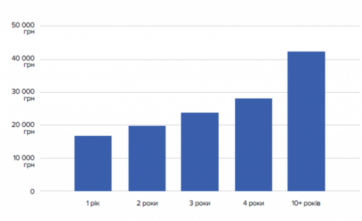 Что влияет на зарплату. Начинающий специалист на старте карьеры может рассчитывать на зарплату от 15 000 грн, но за 10 лет опыта эта сумма возрастет почти в три раза. На существенное повышение зарплаты можно рассчитывать после 5 лет опыта и на 9-й год работы.