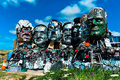 В британском графстве Корнуолл появились скульптуры в виде голов лидеров стран «Большой семерки» (G7). Монумент сделали из электронных отходов, которые отправили на утилизацию, сообщает BBC.