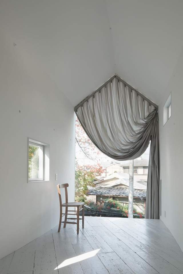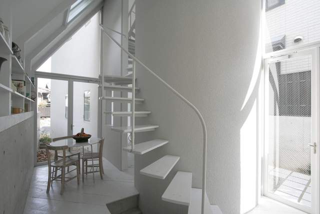 В городе Киото, в Японии, местные архитекторы спроектировали двухэтажную пристройку к основному зданию. Внешне она напоминает сторожевую башню с прозрачной передней стеной, так как здание чрезвычайно узкое. Пристройка служит местом расположения лестничной клетки и публичных пространств для жителей.