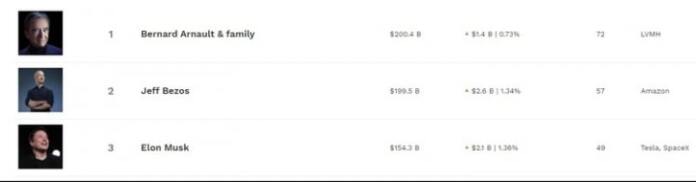 До этого момента Безос был единственным человеком, чье состояние превышало отметку в $200 млрд – это происходило в августе и октябре 2020 года, а также в апреле 2021-го.
