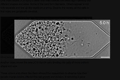 Американская группа ученых вырастила искусственную клетку, которая способна делиться с образованием других таких же клеток. Организм был создан на основе созданной пять лет назад простейшей синтетической клетки, которая имела 473 гена, однако при делении производила дочерние организмы самых разных форм и размеров. О научной работе рассказывается в статье, опубликованной в журнале Cell.