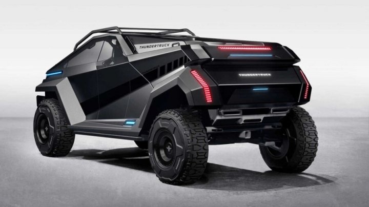 Грузовик оснащен складным тентом на крыше с солнечными батареями, которые могут обеспечить стационарную подзарядку аккумуляторов. Также у Thundertruck есть дополнительная ось, которая превращает его в шестиколесное транспортное средство. Помимо этого, в него встроен дрон-беспилотник военного образца, который может взлетать над автомобилем и проводить 3D-сканирование местности, выводя изображение на дисплее приборной панели.