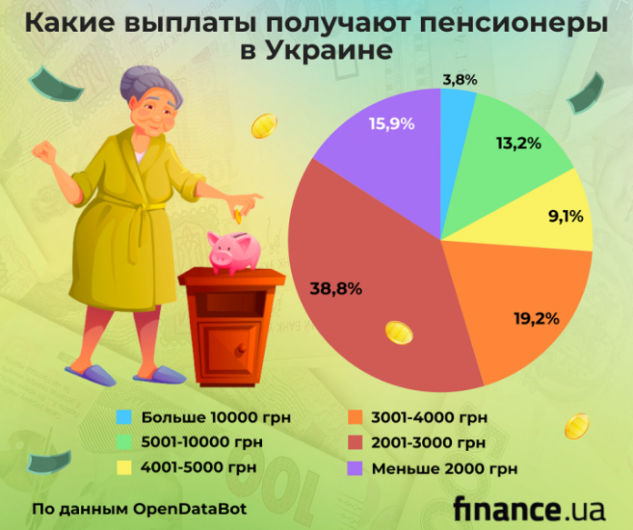 «Средний» показатель не означает «основной». На самом деле пенсию в размере 3001-4000 грн получают всего около 19,2% людей. У большинства же украинских пенсионеров ситуация хуже: 38,8% от их общего количества получают 2001-3000 грн (примерно $72-108). В то время как пенсии более 10 000 грн – только у 3,8%.