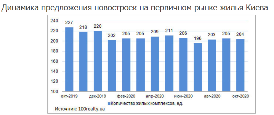 Средняя цена на квартиры в новостройках Киева в октябре 2020 года составила 30 450 грн./кв.м. Относительно сентября средняя стоимость увеличилась на 0,9%, при показателе погрешности ±2,2%.