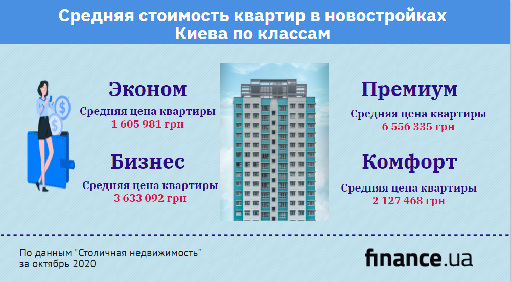 Средняя стоимость квартир в новостройках Киева по классам (инфографика) / Новости / Finance.ua