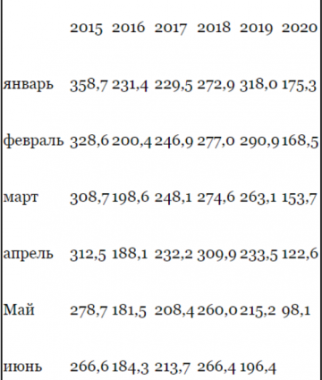 Средние цены импорта газа украинскими предприятиями за 2015-20 гг., $ за 1 тыс. куб. м
